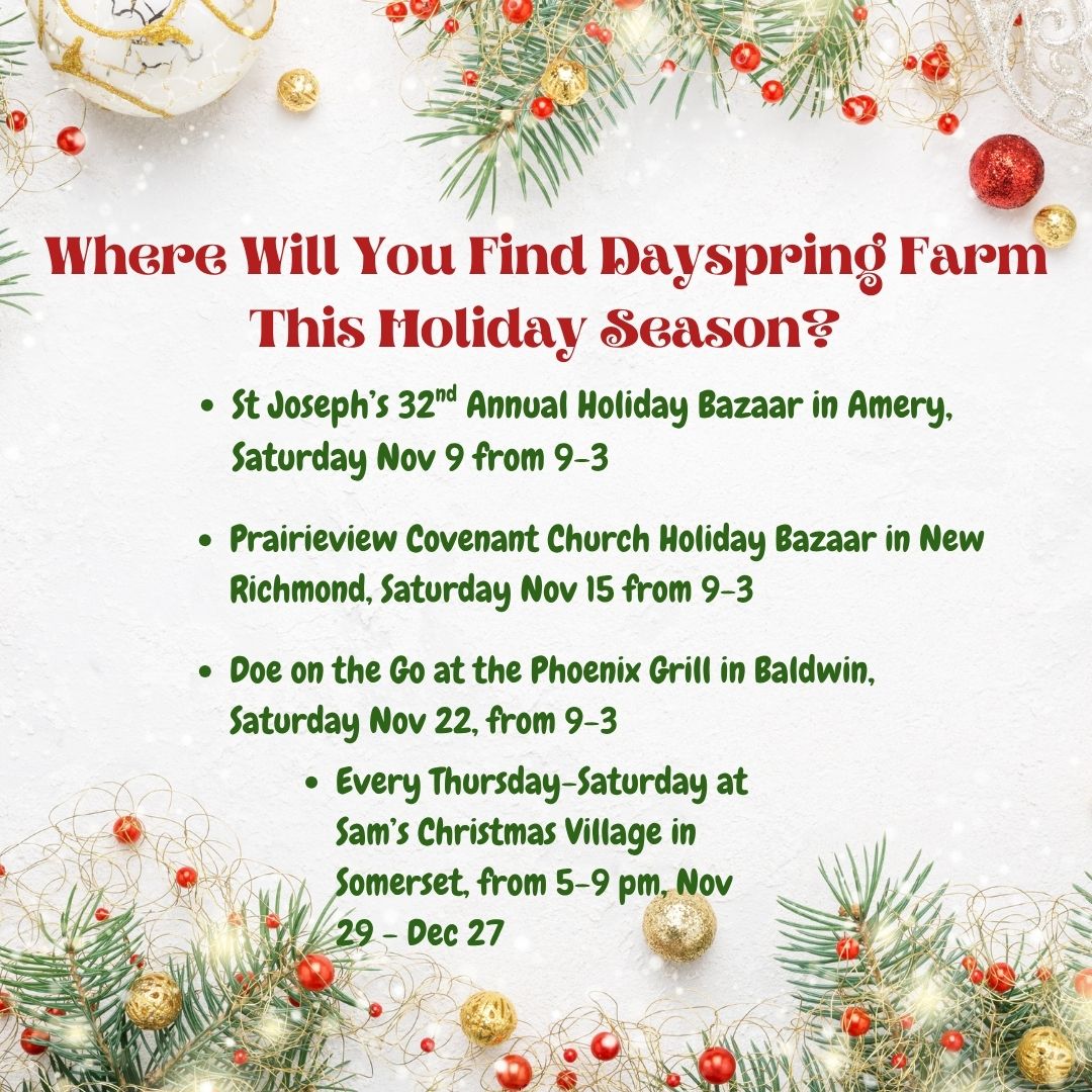Festive shopping for a cozy, sweet holiday season. The markets we're part of are full of local small businesses, so you can support families in your own community while choosing unique gifts you can't get in a big box store.
